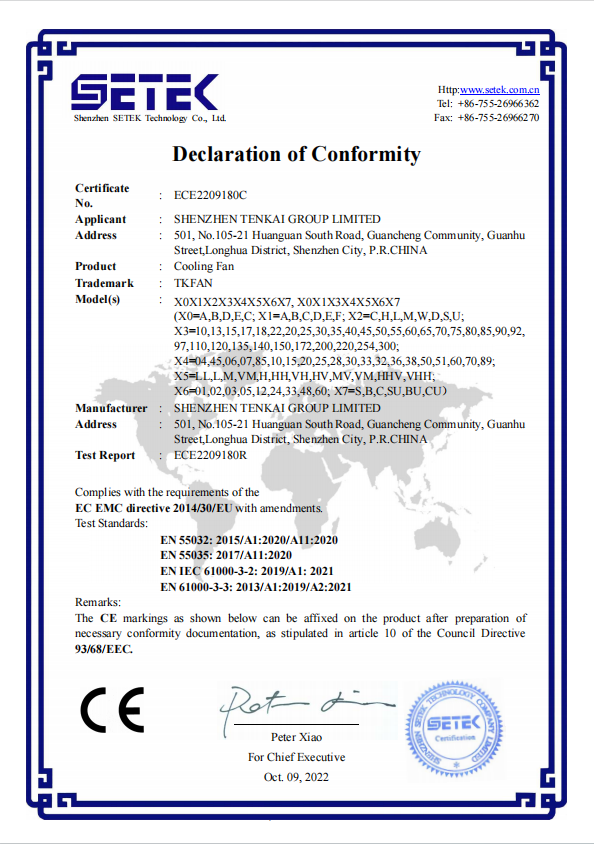 TKFAN is the brand of SHENZHEN TENKAI GROUP. We specialize in the research and manufacturing of high-quality brushless fans. Our products cover various series including miniature, silent, waterproof (IP55-IP68), and high-power fans, with the smallest size reaching 15×15×4mm. Through biomimetic impeller, sine wave drive, and special bearing technologies, our products excel in silence, waterproofing, and durability. Equipped with a 16dB silent laboratory and high airflow testing system, we can provide products and customized solutions for automotive electronics, smart home appliances, outdoor equipment, and other fields.